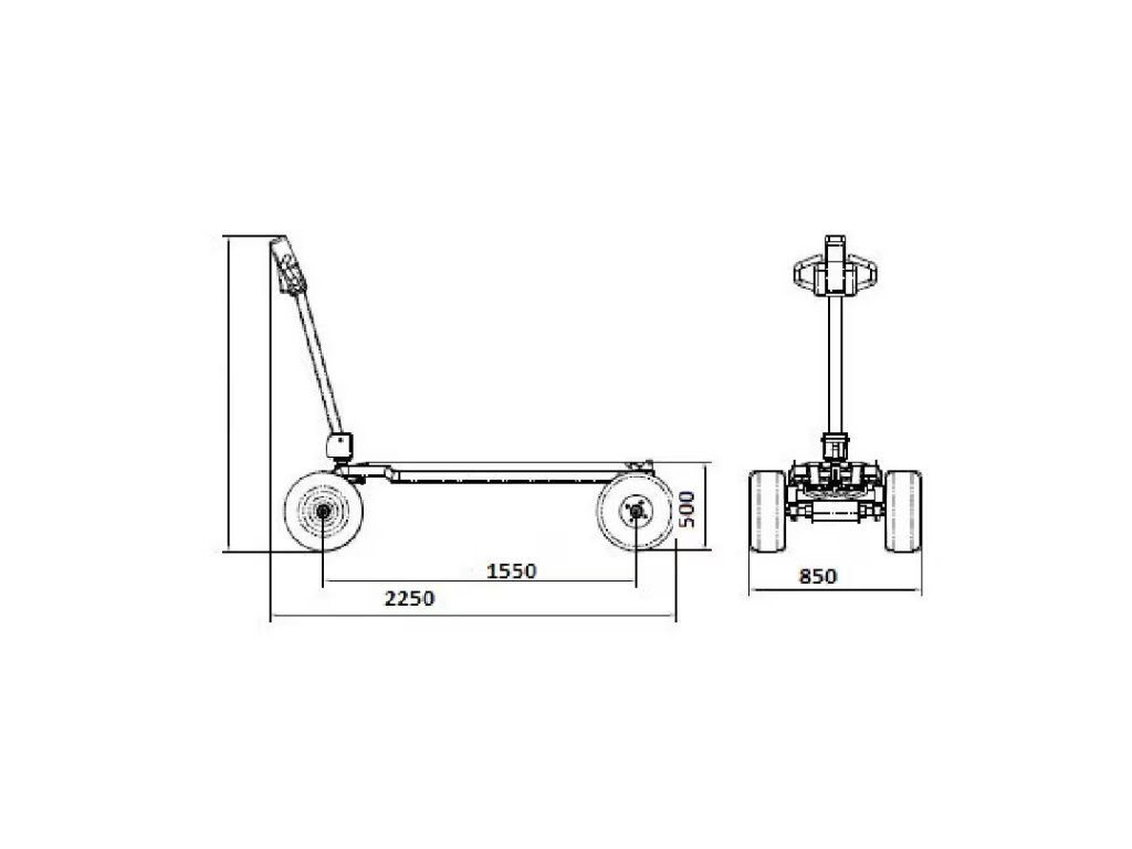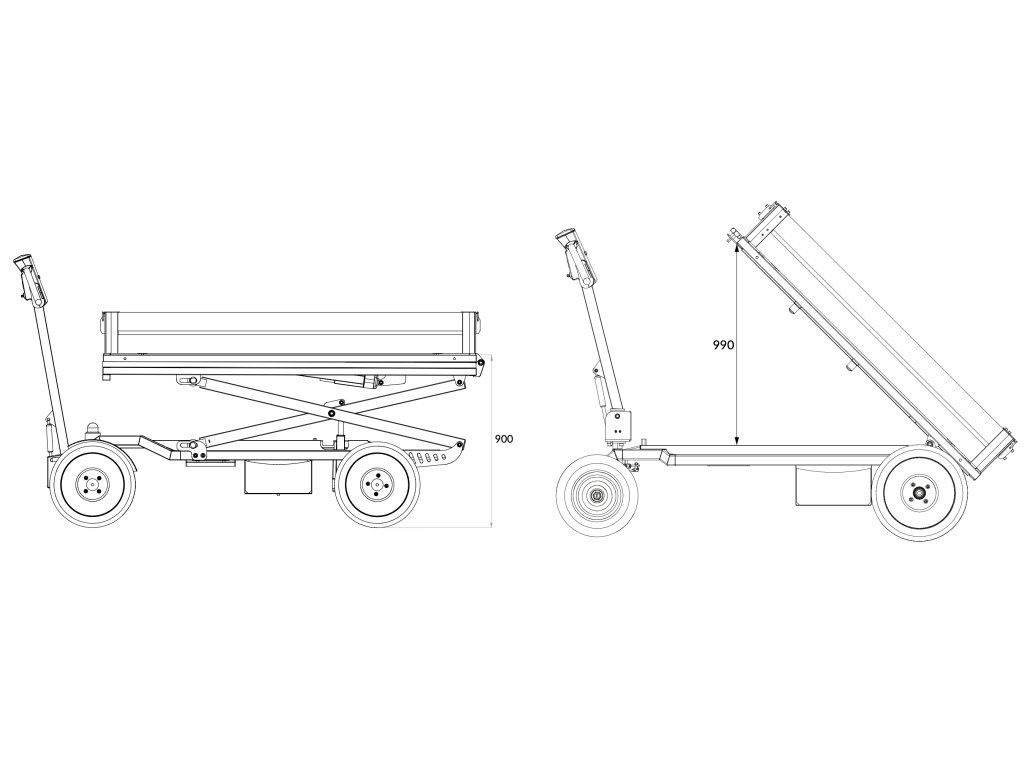 - Nůžkový zvedací mechanismus – umožňuje zdvih plošiny až 90 cm nad zem pro ergonomické nakládání a vykládání