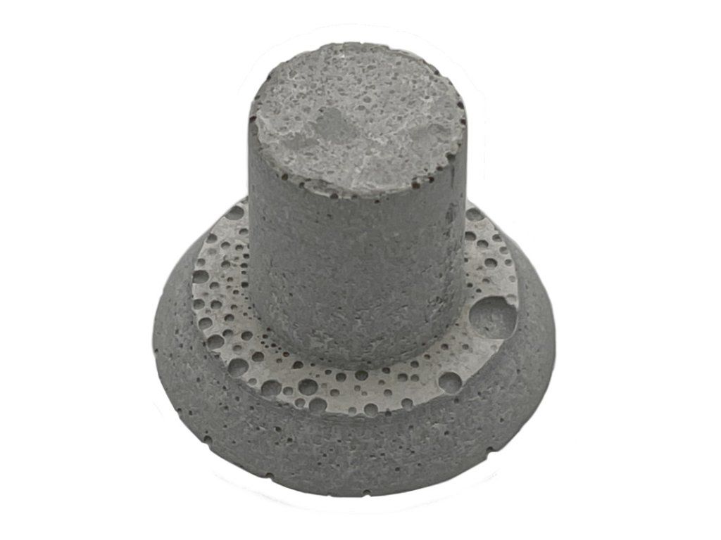Zátka/krytka z pohledového betonu třídy C30/37, vyztužená vlákny. Výrobek je určen k uzavření otvorů po plastových kuželech, kterými byla táhla umístěna do bednění stěny. Díky své odolné a estetické povrchové úpravě zátka dokonale splňuje požadavky moderních betonových konstrukcí.Doplňkové parametry