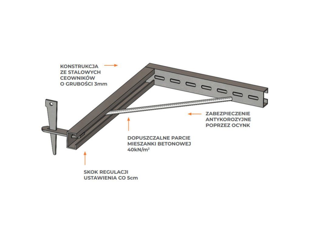 Rohový klín je nezbytným prvkem používaným při montáži bednění v rozích konstrukce. Jeho základní funkcí je stabilizovat sloup tím, že zabraňuje jeho pohybu a udržuje ho ve správné svislé poloze.