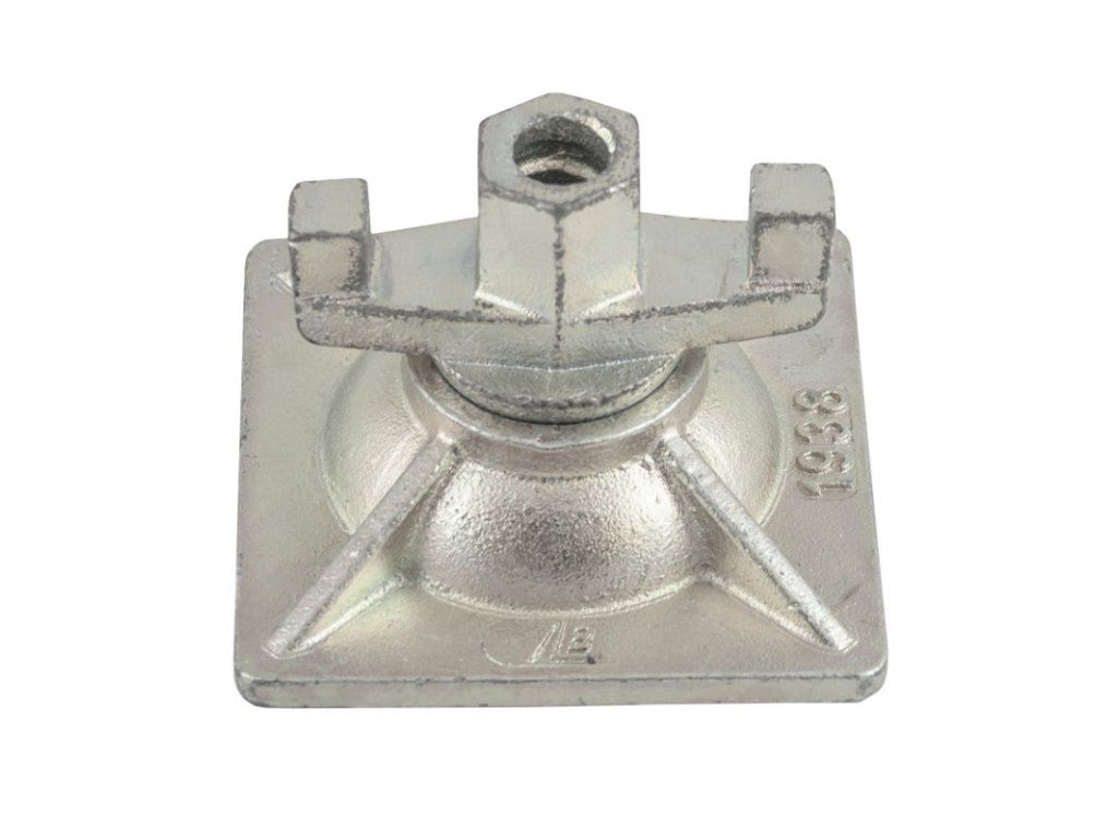 Kloubová matice 113x113 mm je solidní a funkční řešení pro bednicí systémy. Díky kloubovému mechanismu umožňuje nastavení úhlu osy matice k rovině podložky až do 15°. Vyrobena z bílé temperované litiny a pokrytá vrstvou zinku je odolná vůči náročným povětrnostním podmínkám.Doplňkové parametry