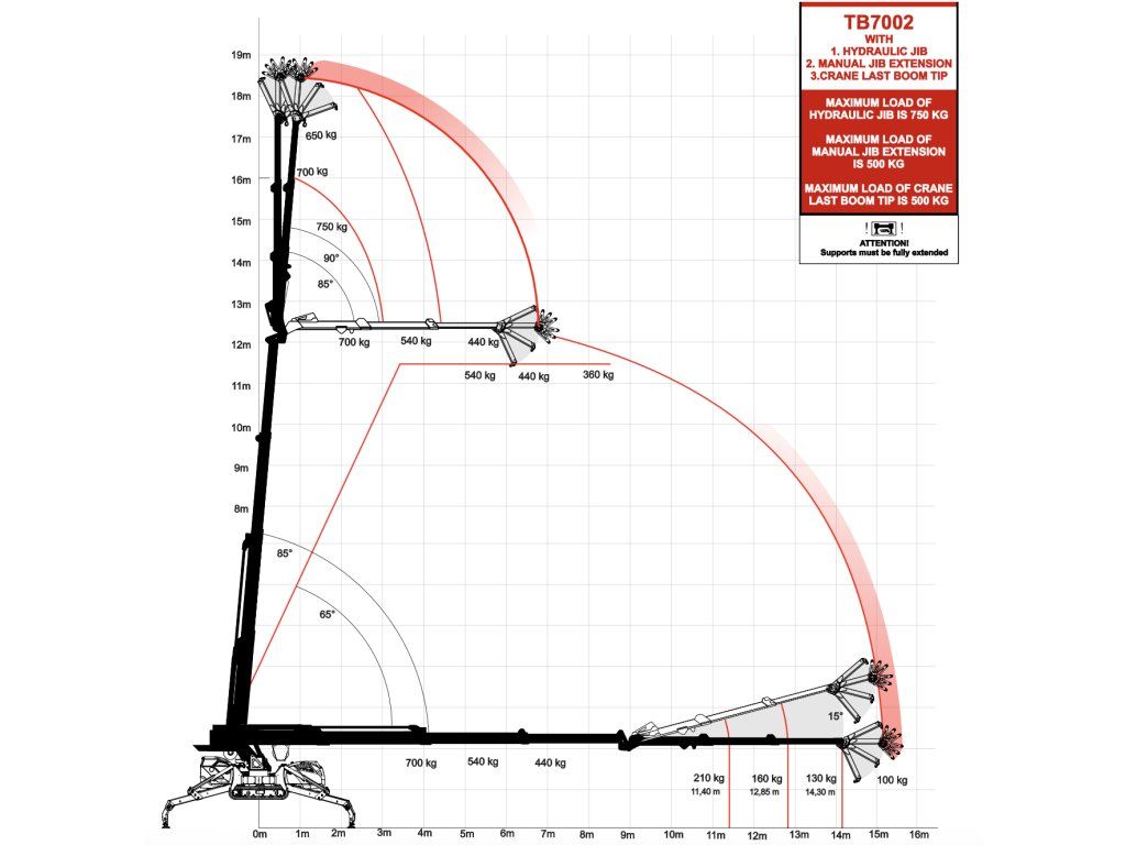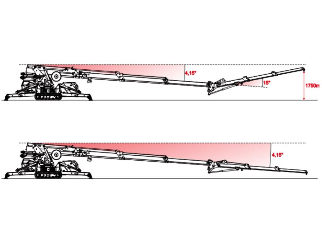 - 3× hydraulické prodloužení výložníku + 2× hydraulické prodloužení JIB