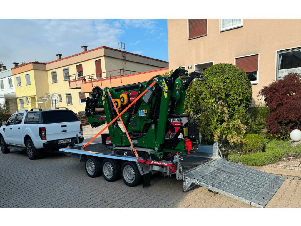 BEFARD TB7002 je vysoce přesný pásový minijeřáb s nosností 3200 kg a vertikálním dosahem až 18,8 metru. Kompaktní rozměry 3,98 × 0,78 × 1,89 m a hmotnost 2850 kg umožňují přepravu na standardním přívěsu do 3,5 tuny, což z něj činí ideální řešení pro mobilní aplikace.