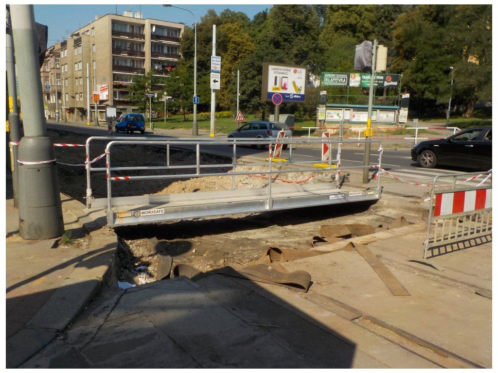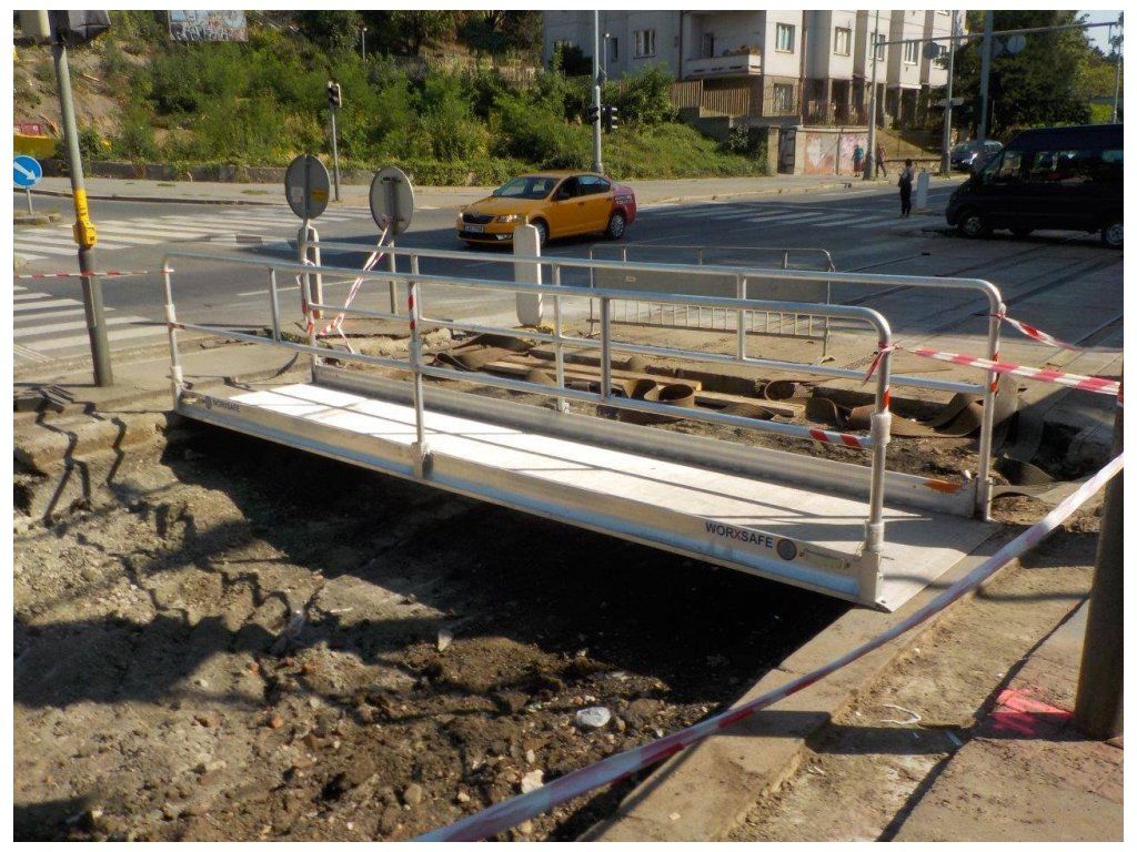 Přechodové lávky najdou uplatnění při přemostění výkopů chodníků, umožňují přístup do budov během stavebních prací, zajišťují bezpečný přechod přes výkopové rýhy a jsou ideálním dočasným řešením pro infrastrukturní práce v městském prostředí i při rekonstrukcích inženýrských sítí.
