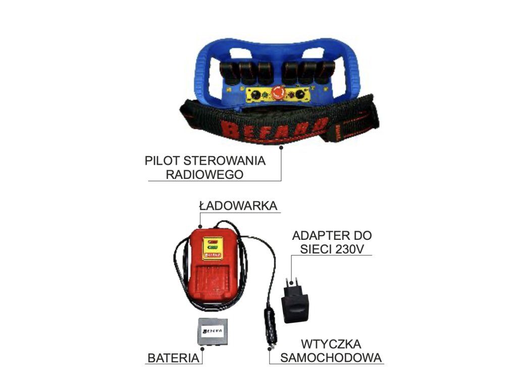 | Rádiové ovládání: | pojezd zařízení, obsluha, hydraulické funkce |