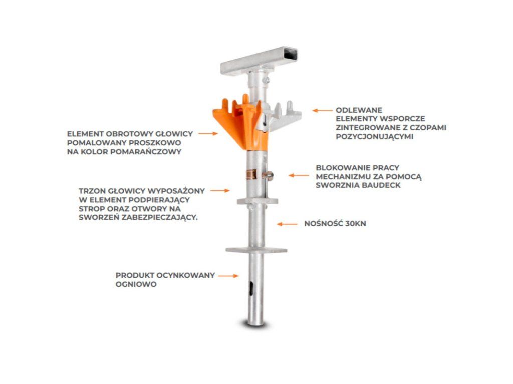 Spouštěcí hlavice pro stropní bednění BAUDECK je systémový prvek určený pro předčasné odbednění stropních panelů při současném zachování bezpečného podepření čerstvé stropní desky. Umožňuje výrazně zrychlit postup prací na stavbě, aniž by došlo ke snížení stability nebo bezpečnosti konstrukce.