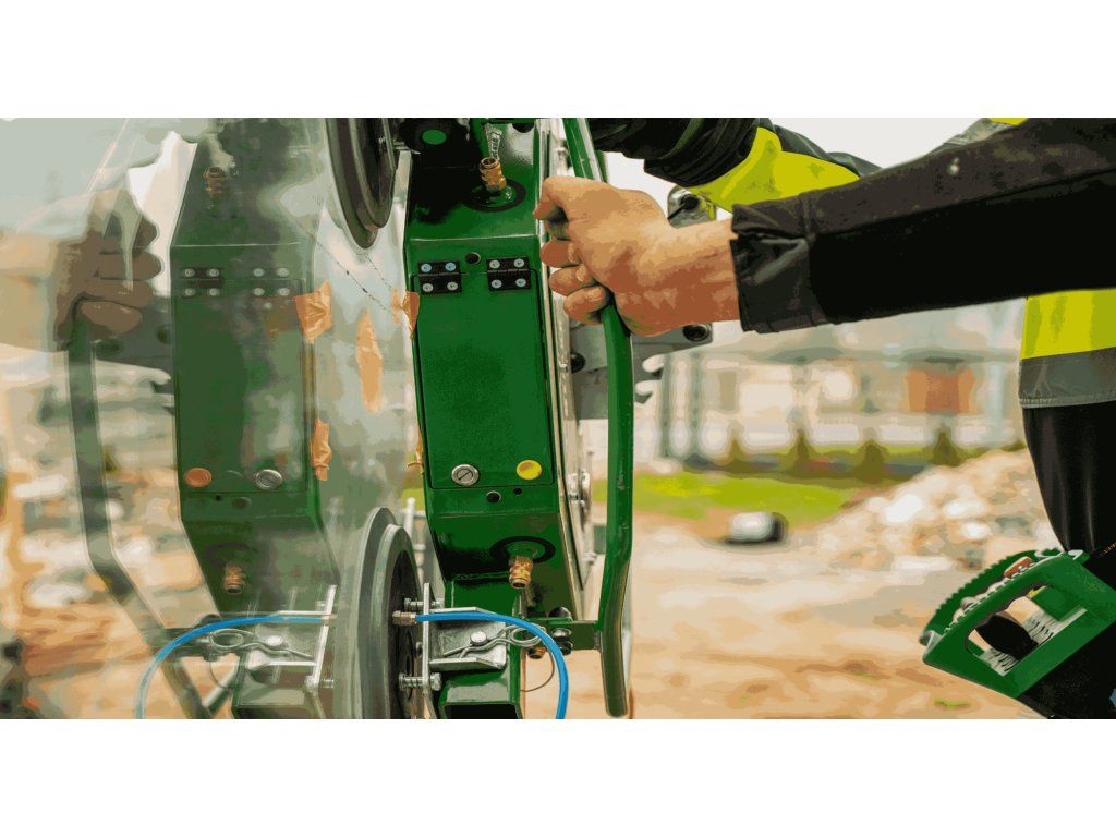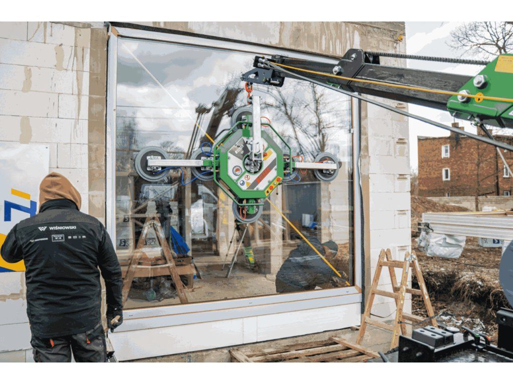 Pro sklenářské a montážní společnosti představuje ideální volbu tento výkonný vakuový zvedák s nosností 900 kg a hmotností 108 kg. Bezdrátové řízení a akumulátorové napájení 12 V včetně nabíječky zajišťují pohodlný provoz. Zařízení disponuje 12 přísavnými deskami Ø 310 mm pro spolehlivou instalaci oken a skleněných fasád. Elektronické monitorování vakua v rozsahu -0,6/-0,8 bar poskytuje přesnou kontrolu. Dvojokruhový vakuový obvod zaručuje nejvyšší úroveň bezpečnosti, plynulé otáčení 360° se zajištěním každých 45° umožňuje precizní polohování. Postupné odpojování a dvojstupňový upevňovací systém háku doplňují bezpečnostní prvky manipulátoru.