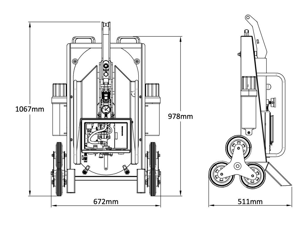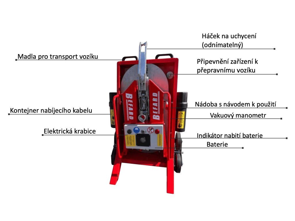 - rozměry přísavky: 800 × 400 mm (standardní přístavka), 1000 x 500 mm (volitelné vybavení)