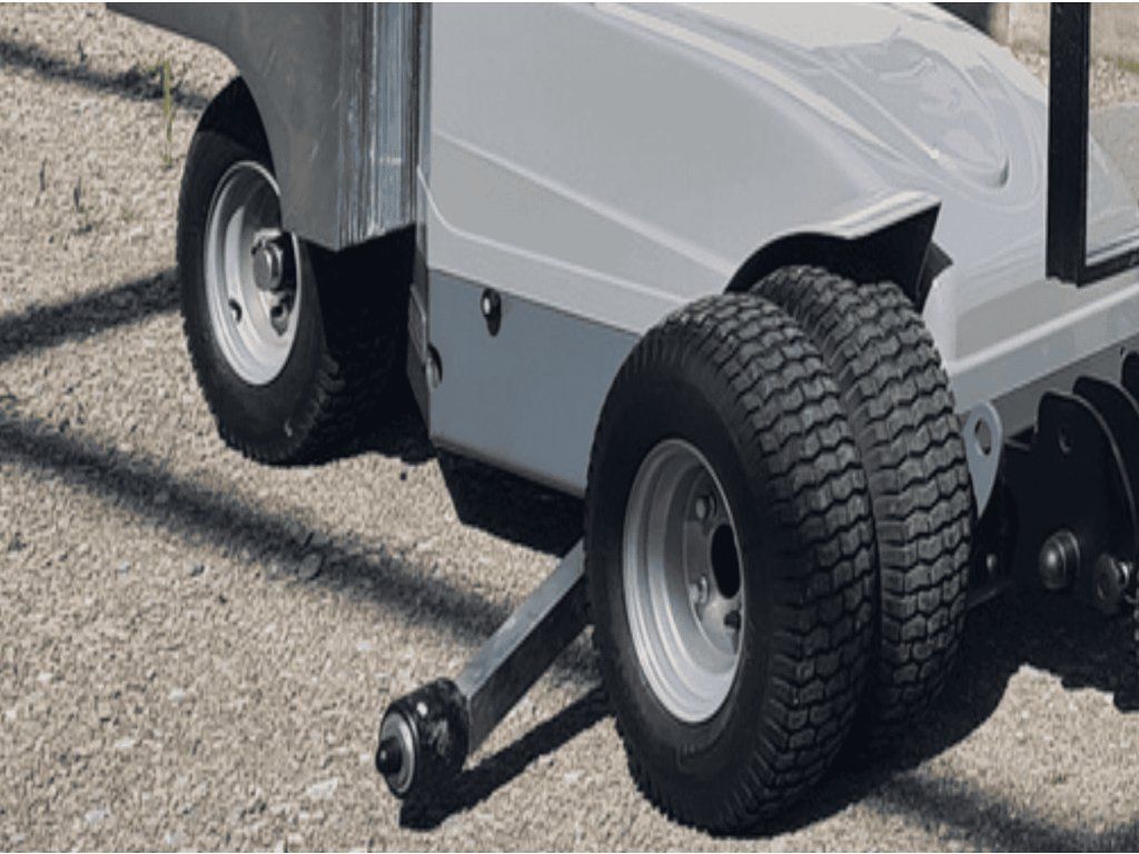 - Dvojitá kola zvětšují šířku stroje a zajišťují lepší stabilitu při manipulaci s těžkými břemeny
