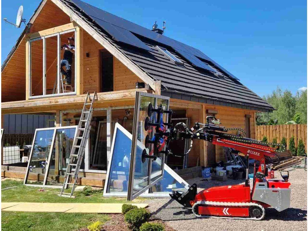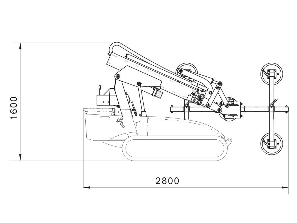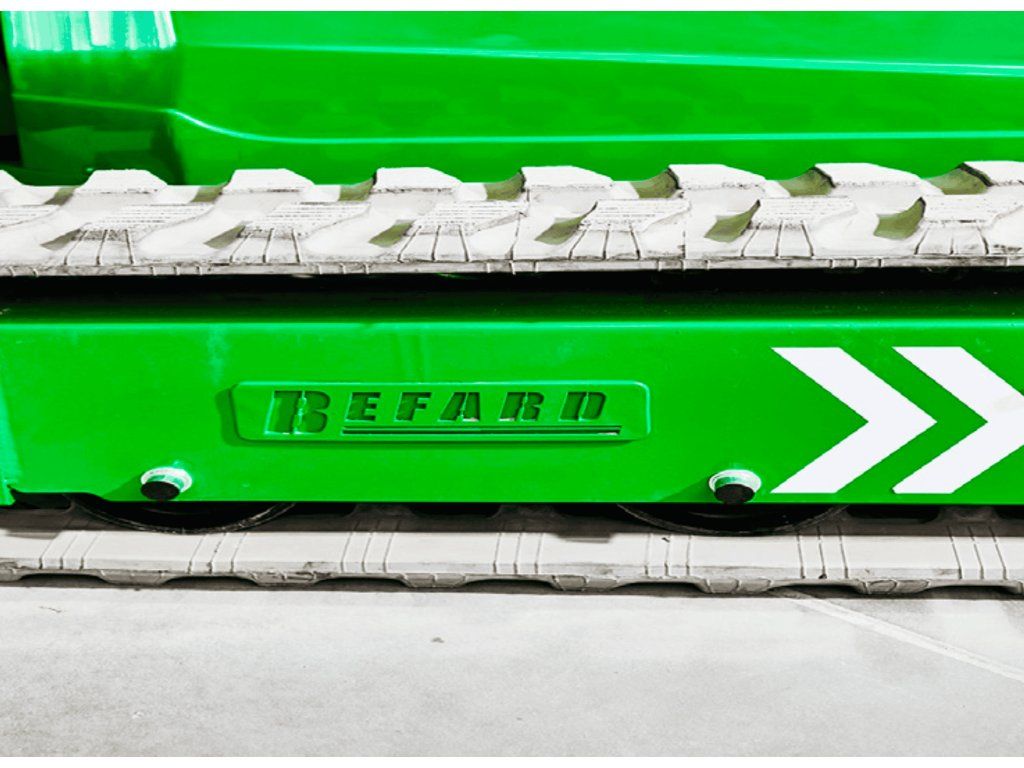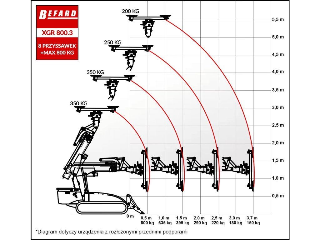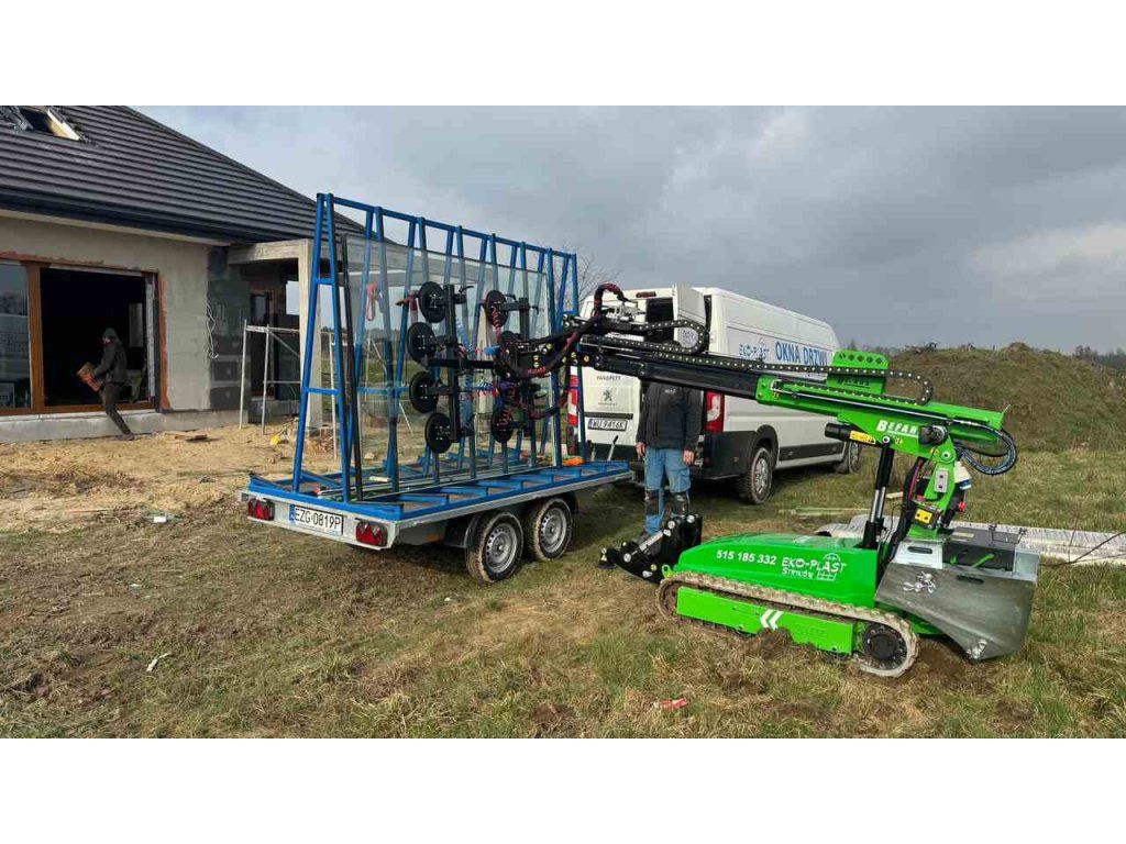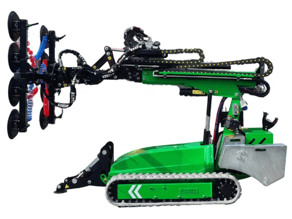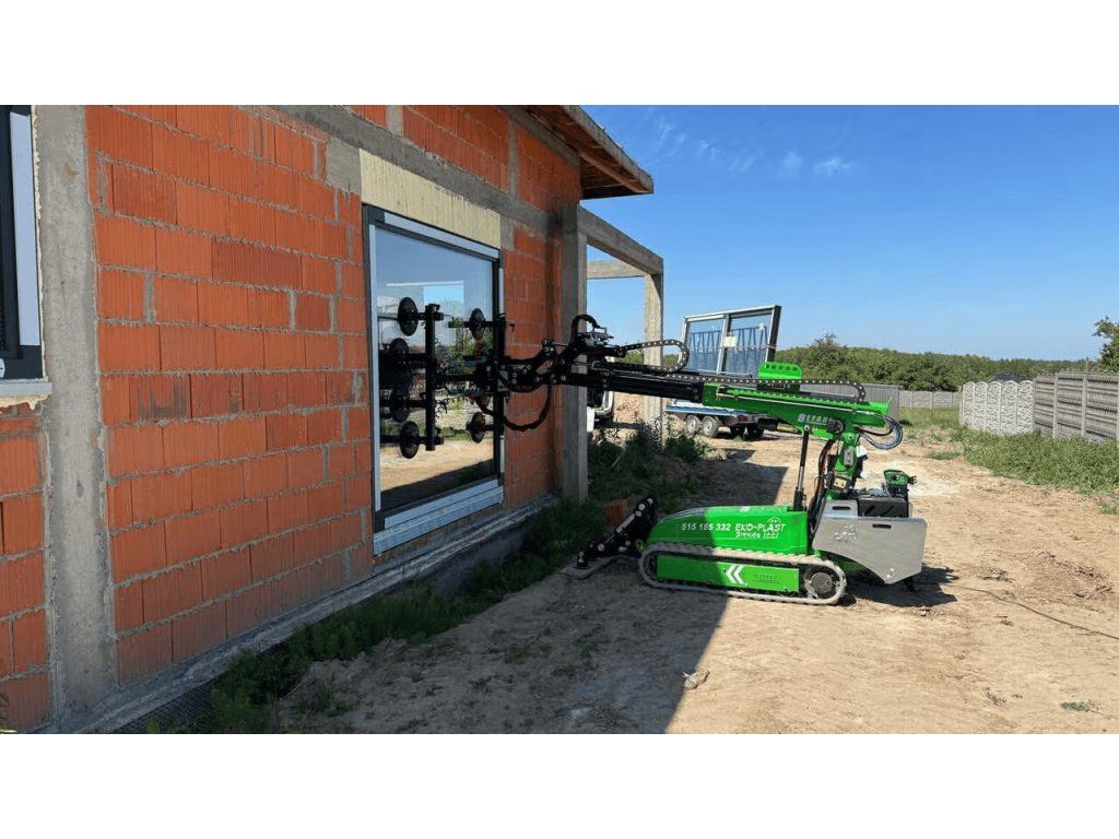 BEFARD XGR800 je moderní pásový manipulační minijeřáb určený pro montáž těžkého skla a velkoplošných oken. Robustní pásový podvozek zajišťuje výjimečnou stabilitu a mobilitu na náročném stavebním terénu, zatímco prodlužovací hydraulická ramena s dosahem až 5,55 m umožňují přesné umístění skleněných prvků i v obtížně dostupných místech.